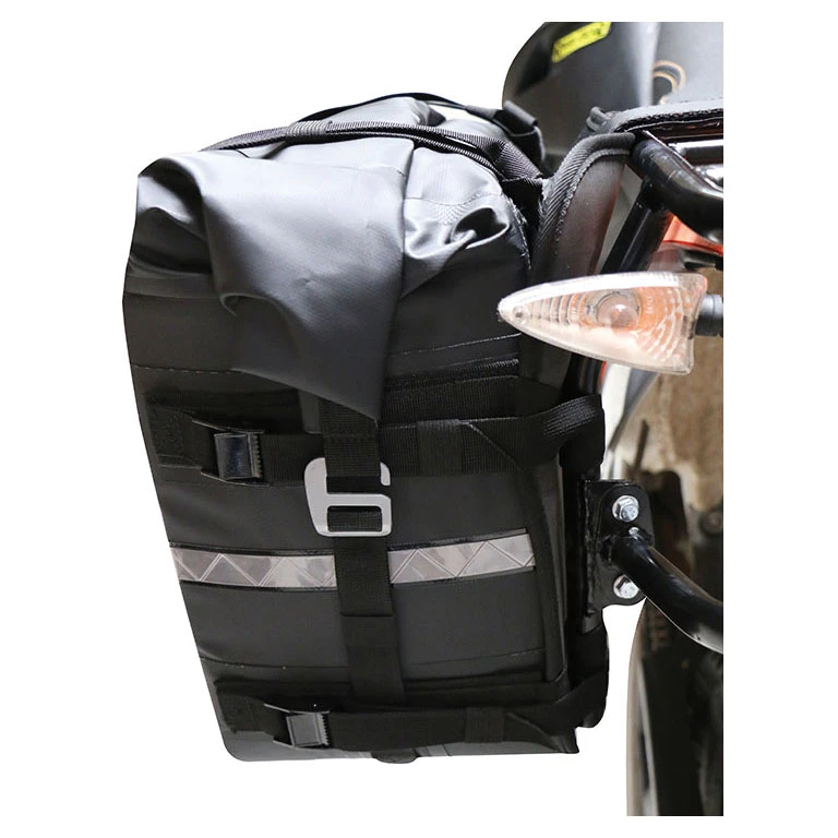 • Each saddlebag securely mounts to your motorcycle using 4 quick release cam buckles and double pull straps